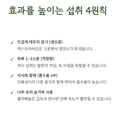 2. 올리브유 섭취방법 기본 원칙 – 이렇게 먹어야 효과가 난다