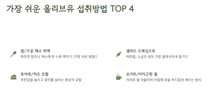 올리브유 섭취방법은 생각보다 단순합니다.
